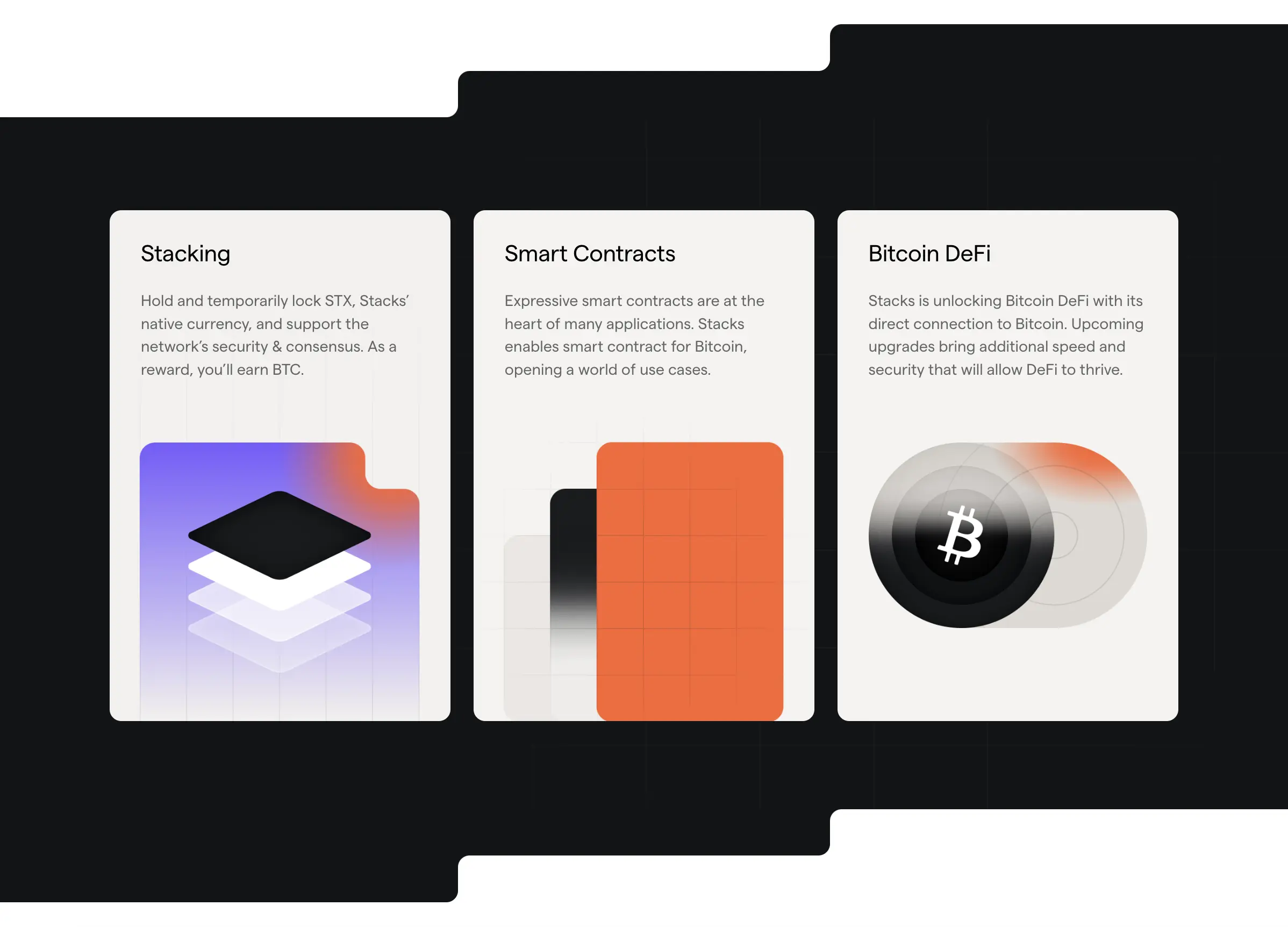 Stacks is a Layer 1 blockchain solution for Bitcoin that enables smart contracts and decentralized applications (dApps) while leveraging Bitcoin’s security. Stacks integrates Bitcoin's hashpower and enables the creation of Bitcoin-backed assets such as sBTC, using the Clarity smart contract language for predictable, verifiable outcomes.